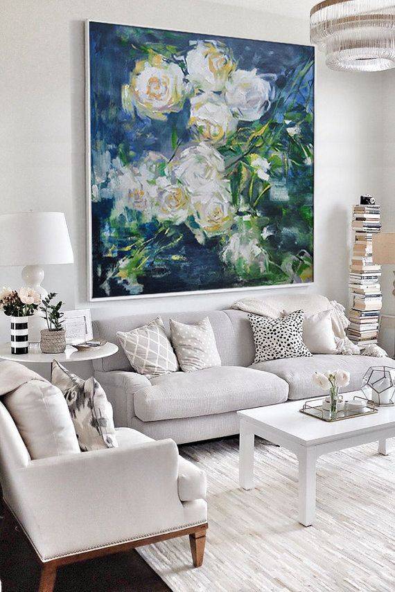 بهترین دیوار برای قرار دادن تابلوهای نقاشی، دیوار پشت کاناپه است که برای آن نیز باید توجه کنید تا اندازه قاب از طول کاناپه بزرگتر نباشد.