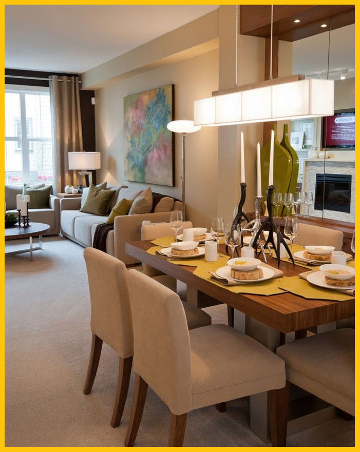 یک ویژگی غالب در نظر بگیرید. برای مثال بخش غذاخوری را بر روی یک ویترین یا قفسه ظروف زیبا و بخش نشیمن را بر روی میز تلویزیون متمرکز کنید.